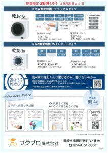 ガス衣類乾燥機「乾太くん」25%OFFキャンペーン開催中!(5月末まで)